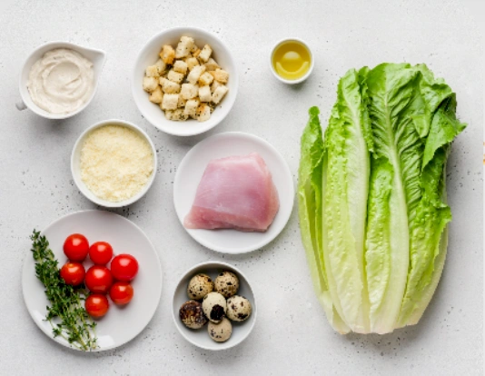 - Листья салата порвать руками, яйца сварить вкрутую и разрезать пополам, черри — разрезать пополам.